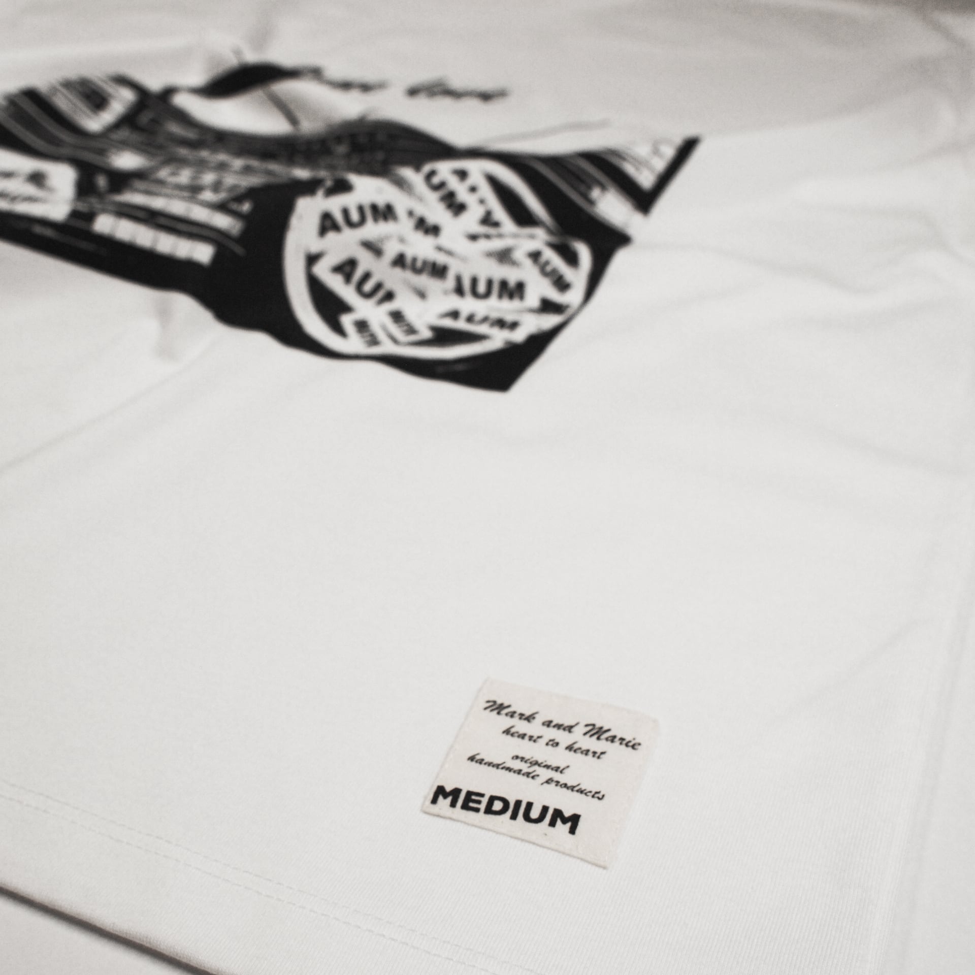 ・Tシャツのプリントやブランドネームは、Mark & Marie のオリジナルハンドメイドで製作しており、一点一点風合いや仕上がりが異なります。