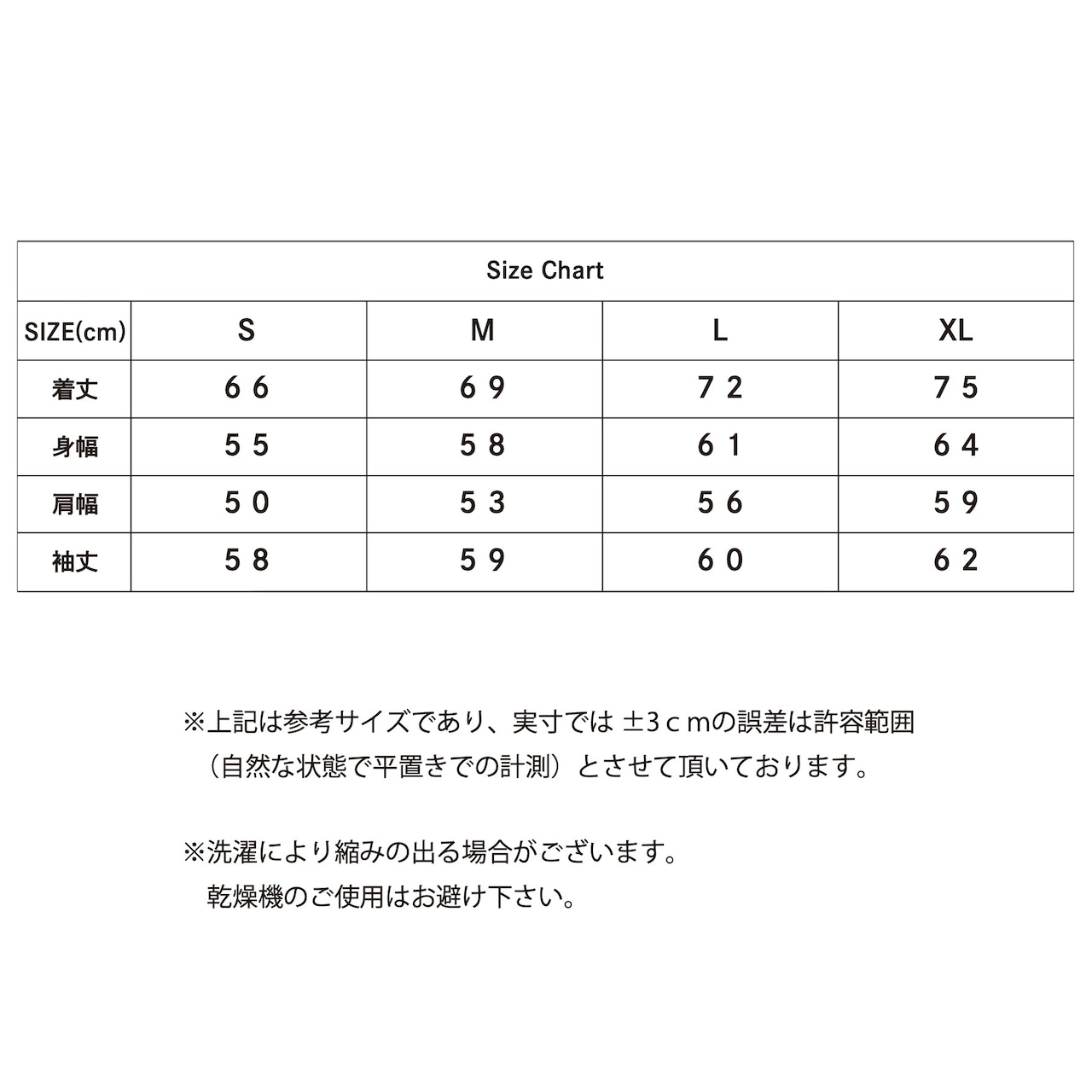 ※通常のサイズ感で選ばれた場合は、ジャストのサイズ感です。ルーズに着たい方、オーバーサイズで着たい方は、1サイズ2サイズアップがお勧めです。袖丈・着丈・身幅のお好みで選ぶとベストです。